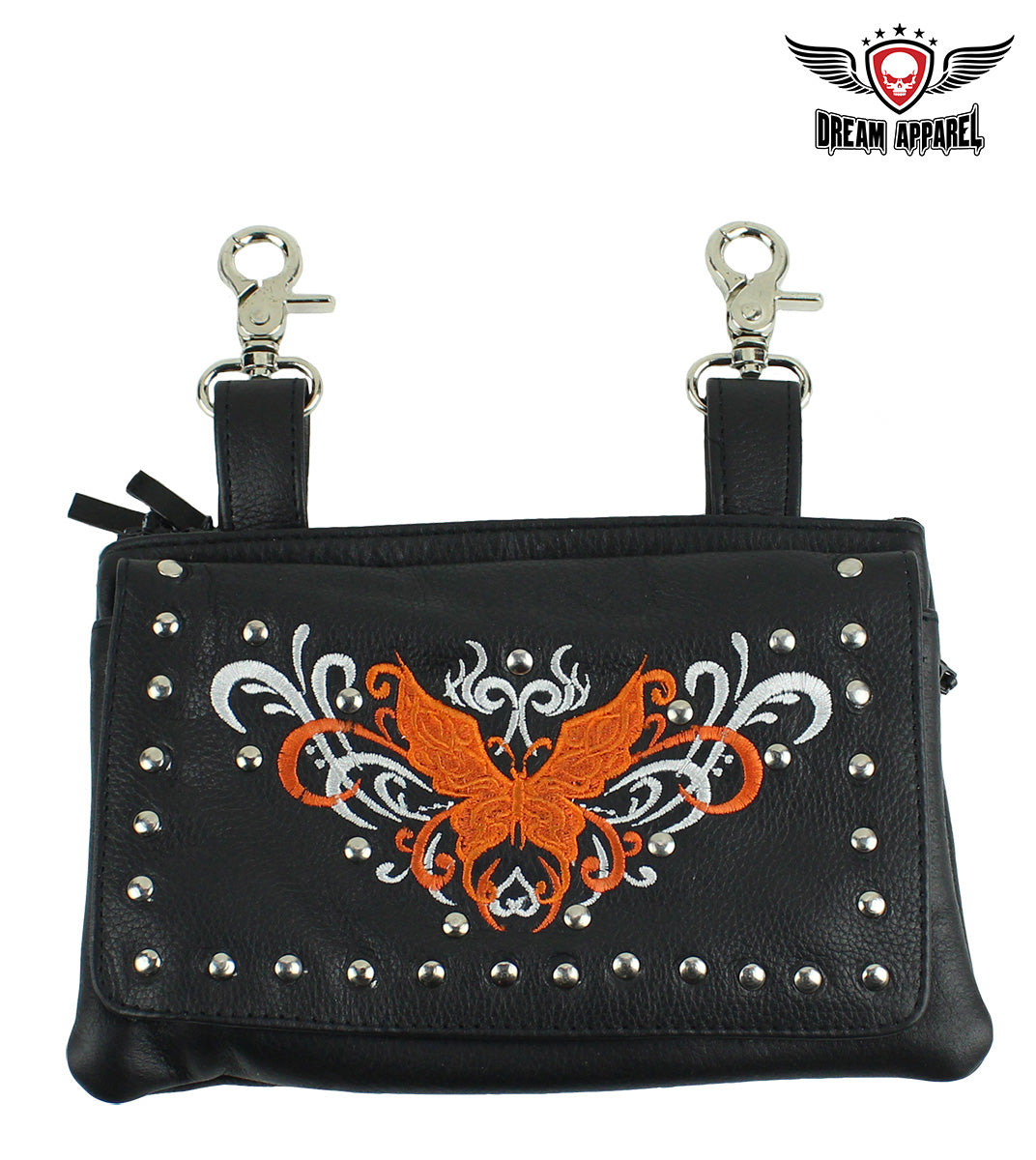 All Naked Cowhide Leather Orange Butterfly Belt Bag