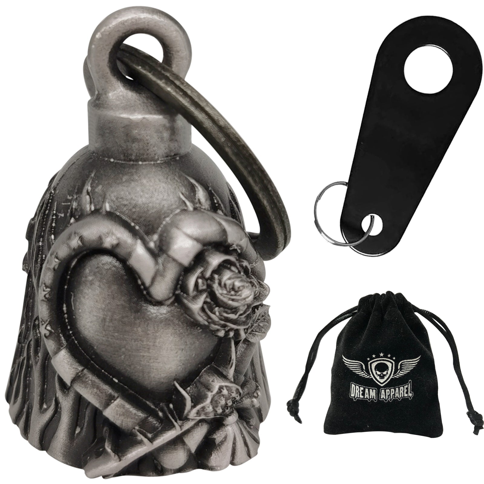 - Dream Apparel Heart with Rose Motorcycle Bell, for Good Luck and in 3-D, Light Weight