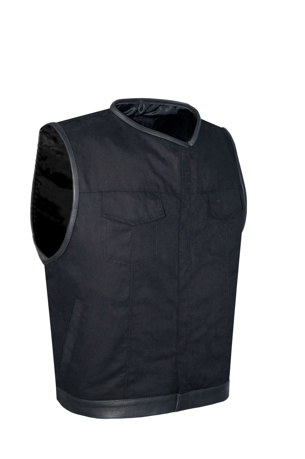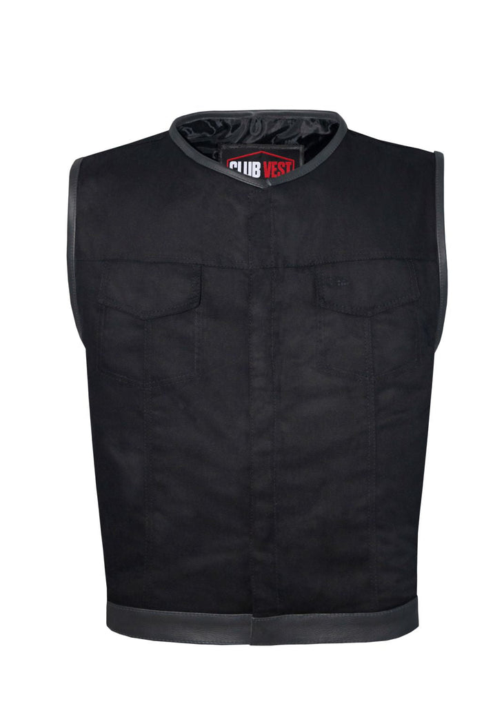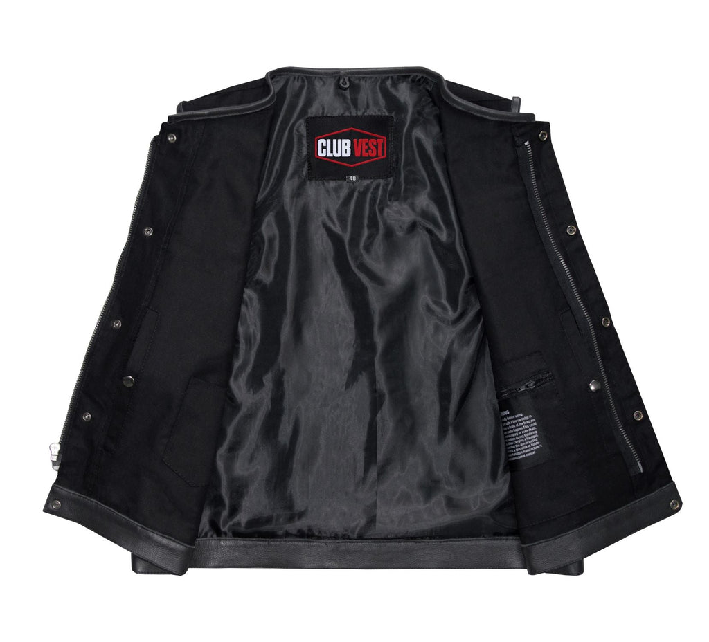Mens Black Denim Club Vest With Black Liner & Snaps & Zipper Closure