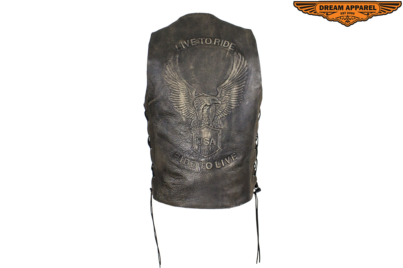 - Embossed eagle and "Live to Ride, Ride to Live" on back