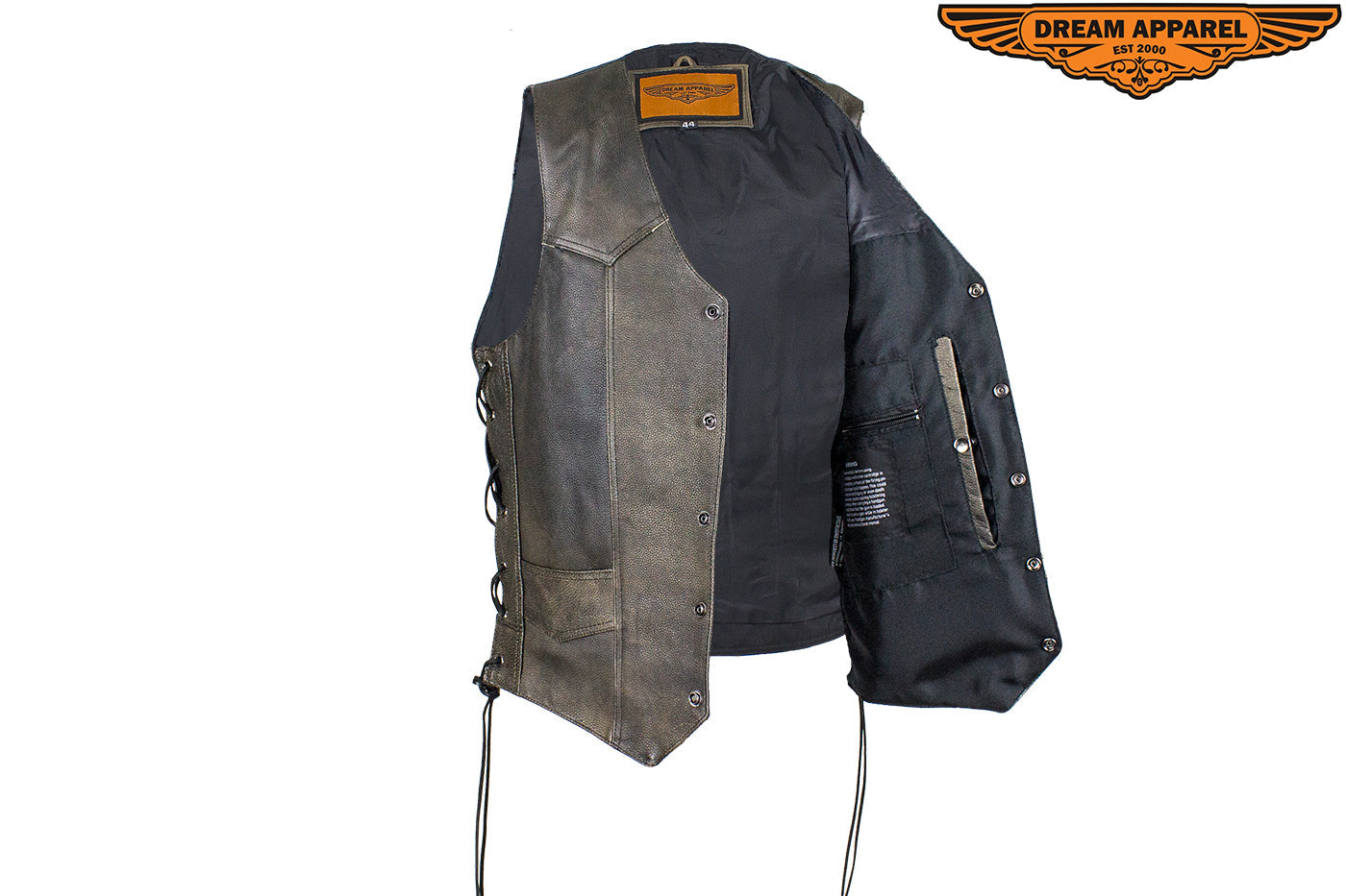 Dream Apparel Men's Brown Leather Vest with Live to Ride