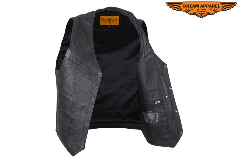 Mens Plain Black Leather Vest Heavy Duty Premium Cowhide Leather