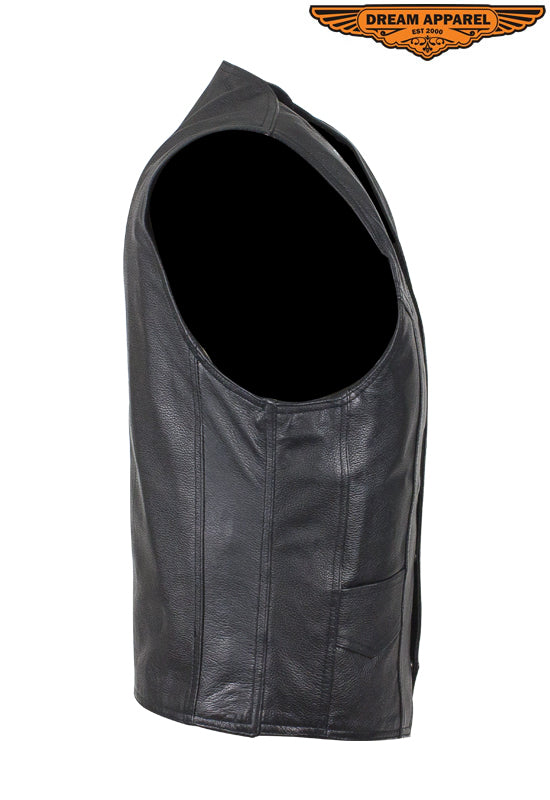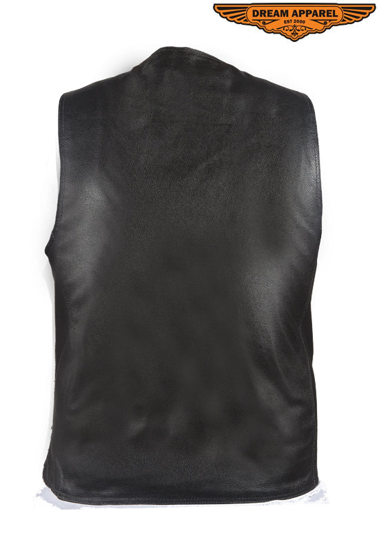Vests are meant to be worn, there are so many people representing their vests without finding the right vest for themselves. If we weren’t growing to be the best, we wouldn’t want to be perfecting the riding experience through your attire. Our Amazing selection of vests like this one is part of all our top quality products using only Top grade Heavy Duty Soft Cowhide Leather. It contains 2 slip inside pockets, one on each side with button snap closures. The solid back panel was created with the idea of setting patches or embroidery a hassle free job. There are 4 snaps that close up the vest. Don’t forget about the 2 convenient pockets in the front. The polyester lining is an amazing last quality to have in it.