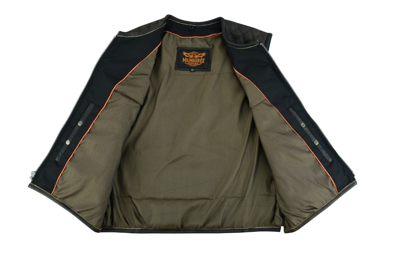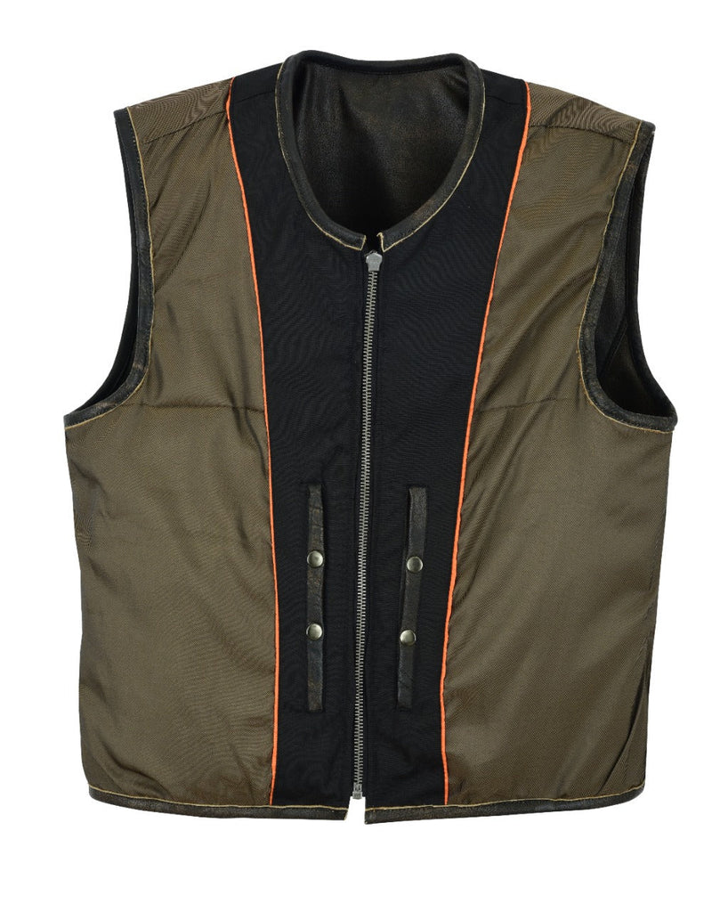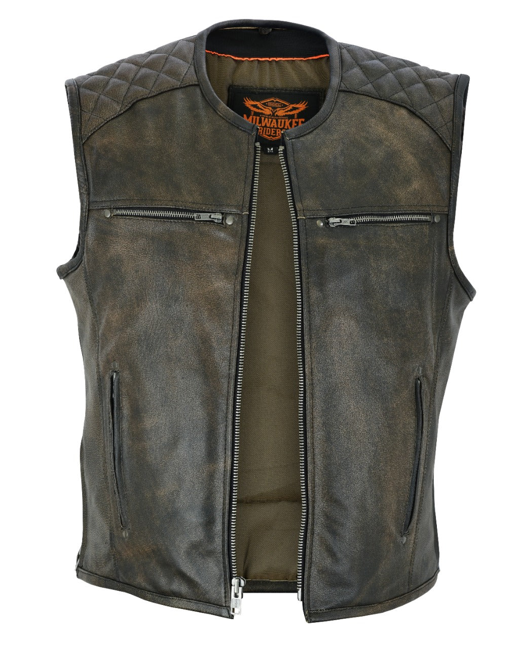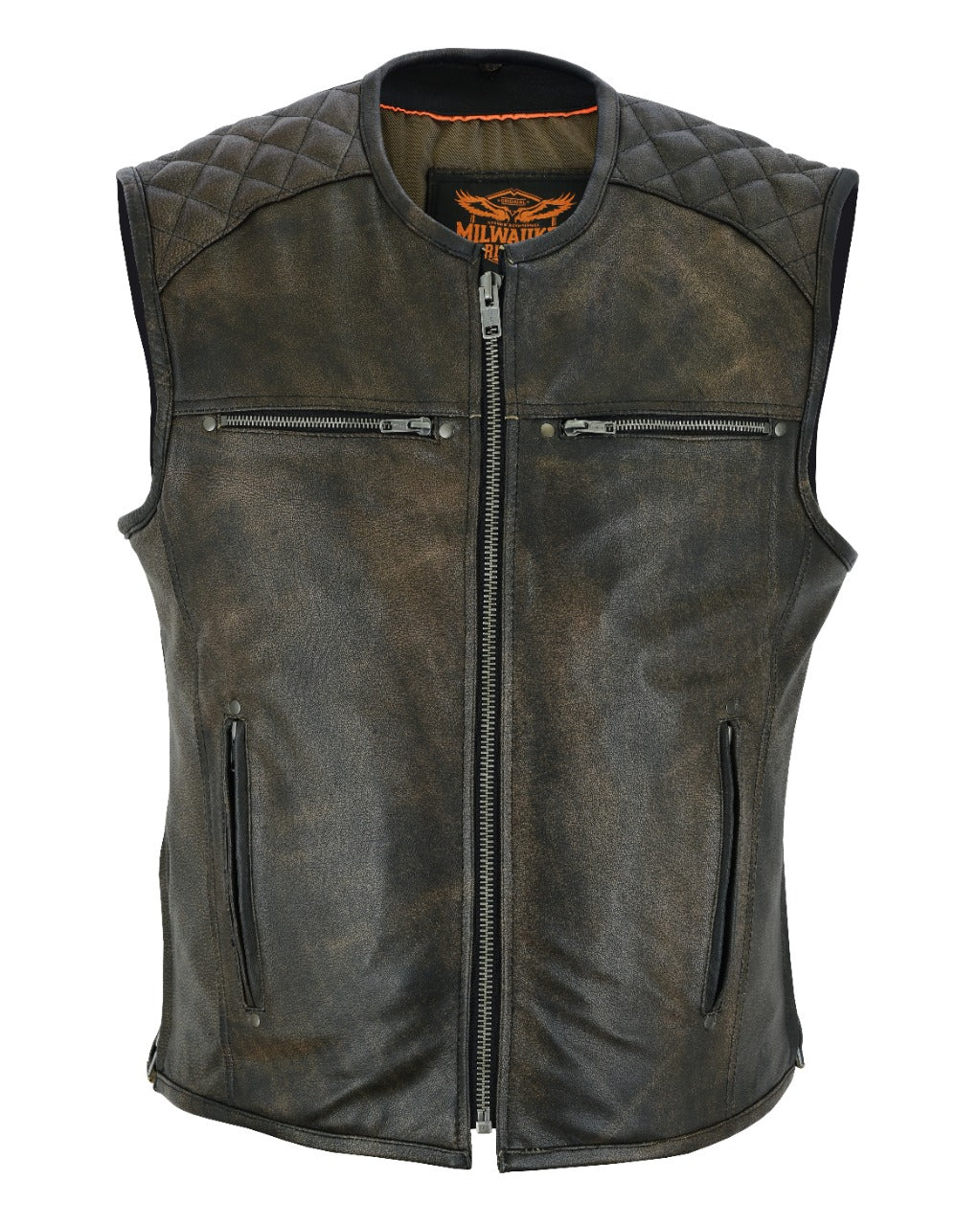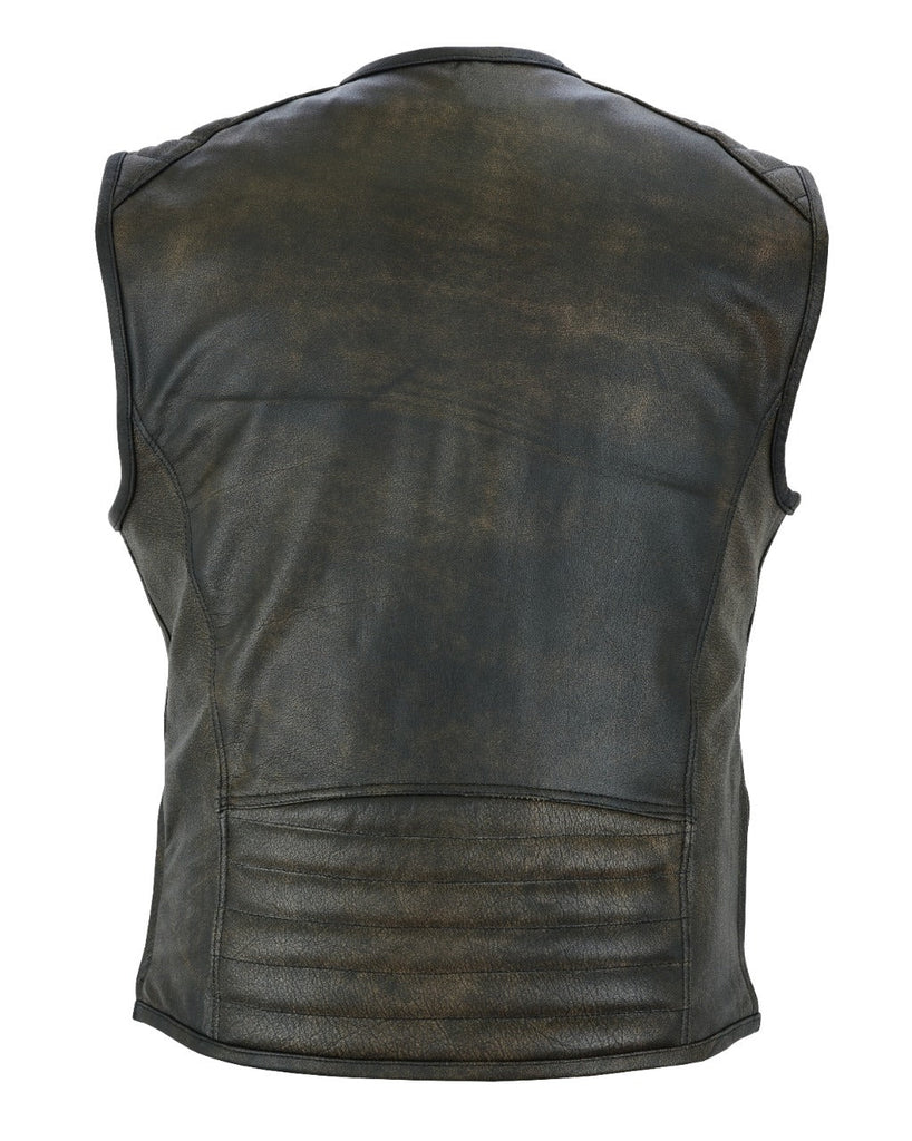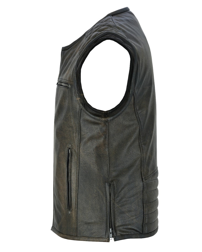 Mens Retro Brown Premium Naked Leather Vest Padded Shoulders, Side Zippers for Comfort Fit