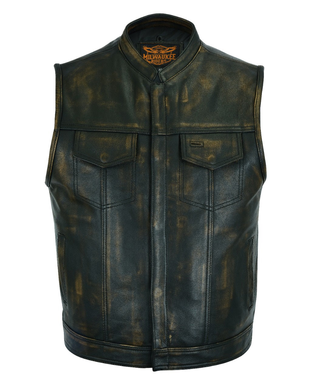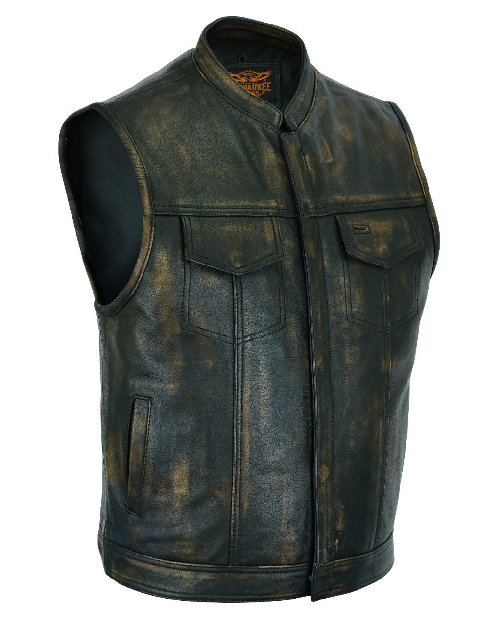 Dream Apparel® Mens SOA Style Motorcycle Club Vest® Naked Distressed Brown Leather