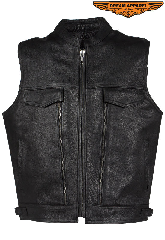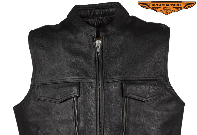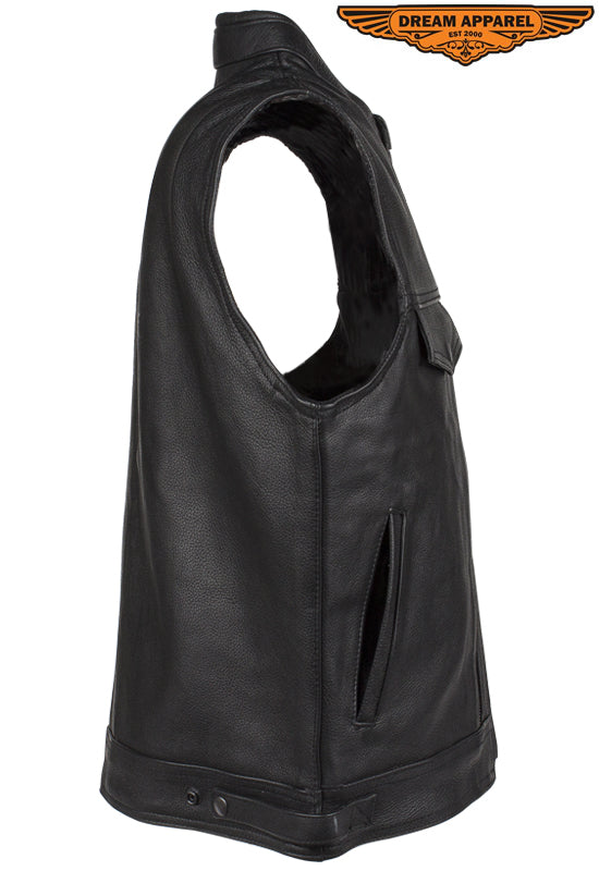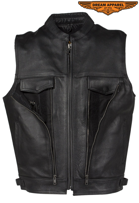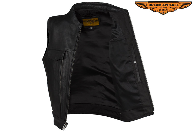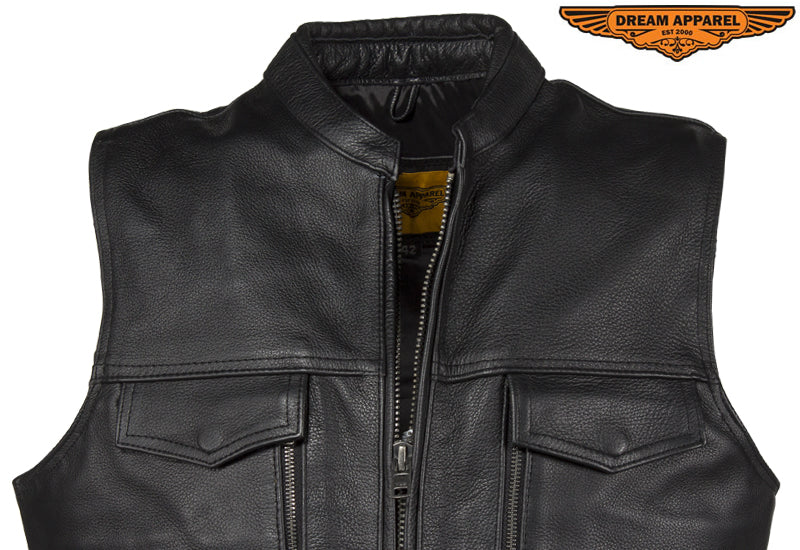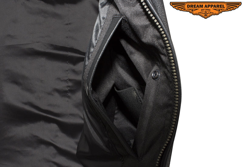 Into the depths of which your mind calls, all you see are roads and all you hear is the engine roaring. The ground beneath your feet as you slide along the earth going immense speeds. What kind of jacket would be the last one you buy? Vests should be able to last a long time with great endurance to fit the lifestyle. At Dream Apparel, we have created a world of leather to keep you bandaged from all the enemies on the road. Wind, rain, and the darkness of the night. Motorcycle club vests are meant to be unique but when you think of them, you see the bare bones of the leather. This is what we did, we have created the best partnership on the road, a man and his leather. Coursing through flesh and bone is the heart of a rider, the ones who live knowing that live a different life. An interesting life it is, but what kind of life if you cannot come back to the motorcycle club without your colors bleeding through your pores? There comes a vest to help you bring your heart out into the physical world. With the stylish flash of the lined interior of this vest and its absurd amount of pockets. 14 different pockets to choose from. 2 on the front, 3 hidden on the front on each side as well. Then within are 3 hidden pockets on each side, and leaving you with a gun pocket with a strap for the nozzle inside.