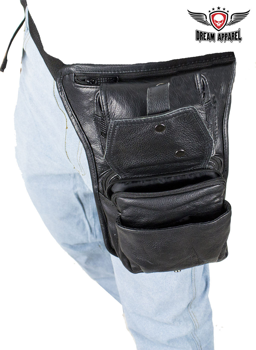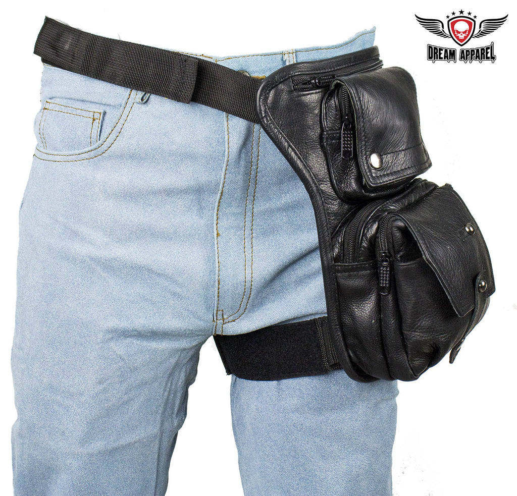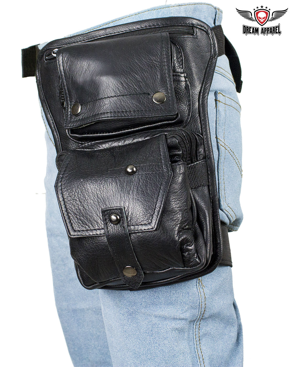 Premier Black Leather Multi Pocket Thigh Bags with Gun Pocket