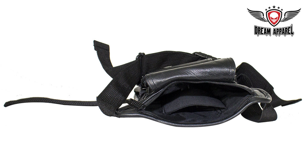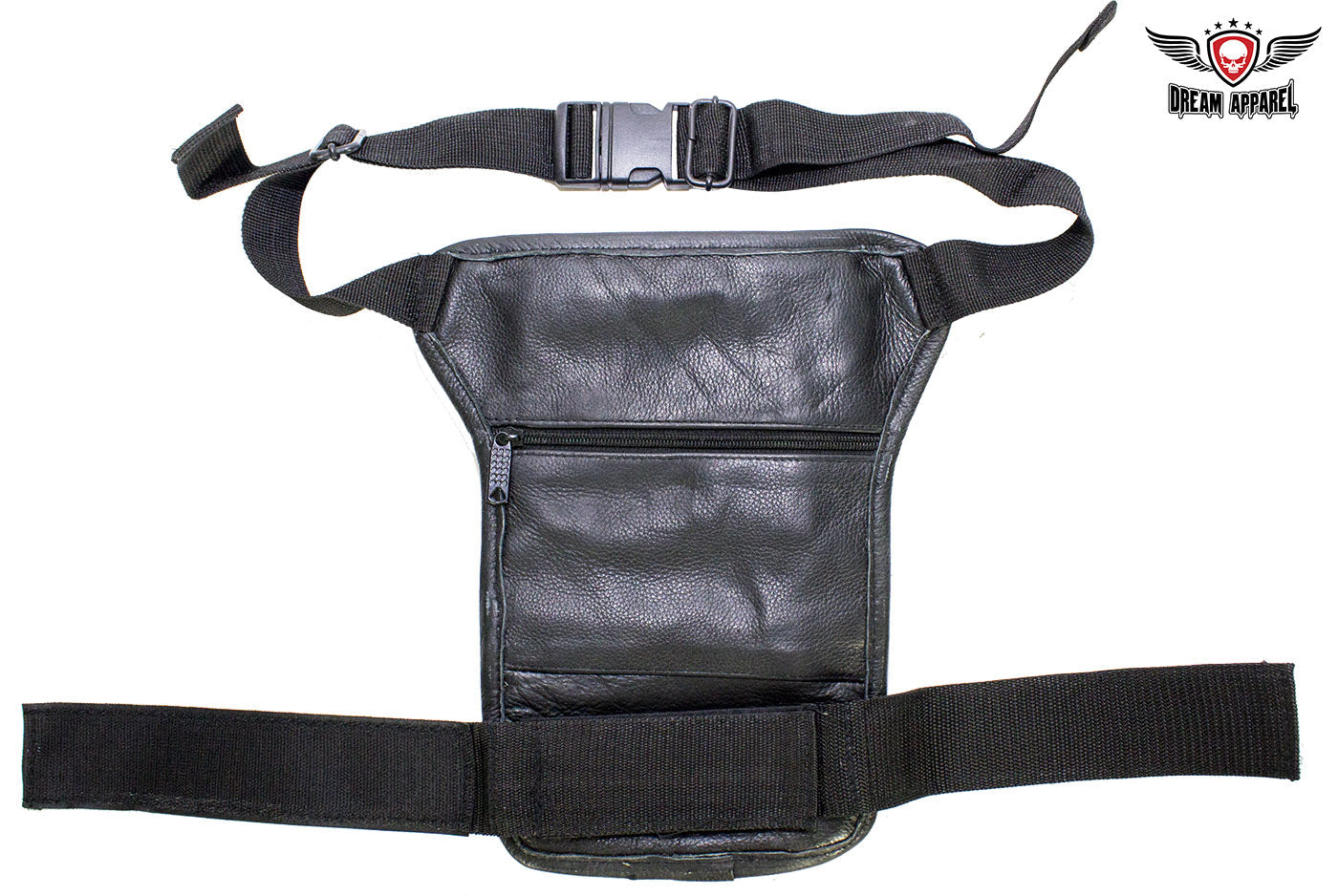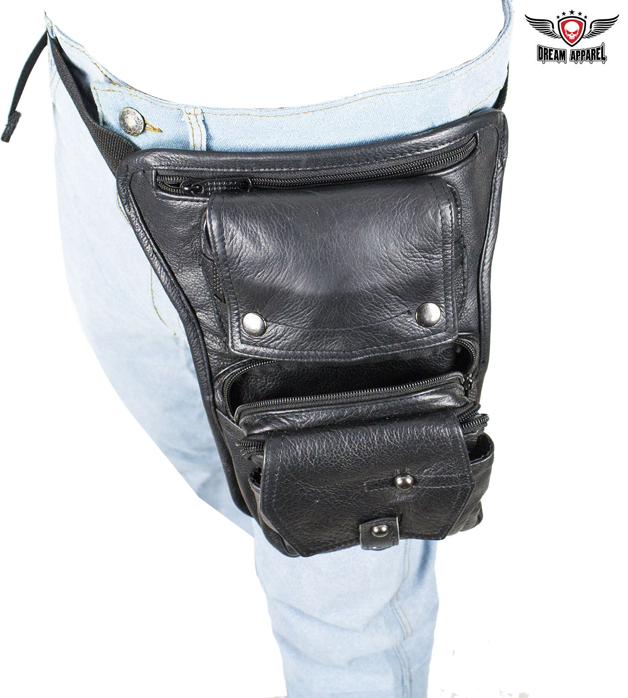 Premier Black Leather Multi Pocket Thigh Bags with Gun Pocket