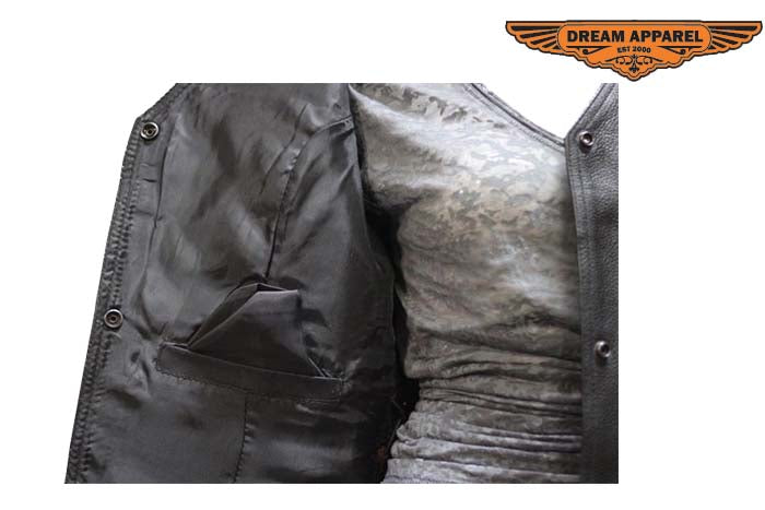 - 2 concealed gun pockets with elastic straps