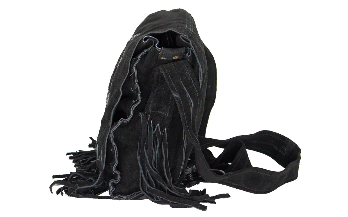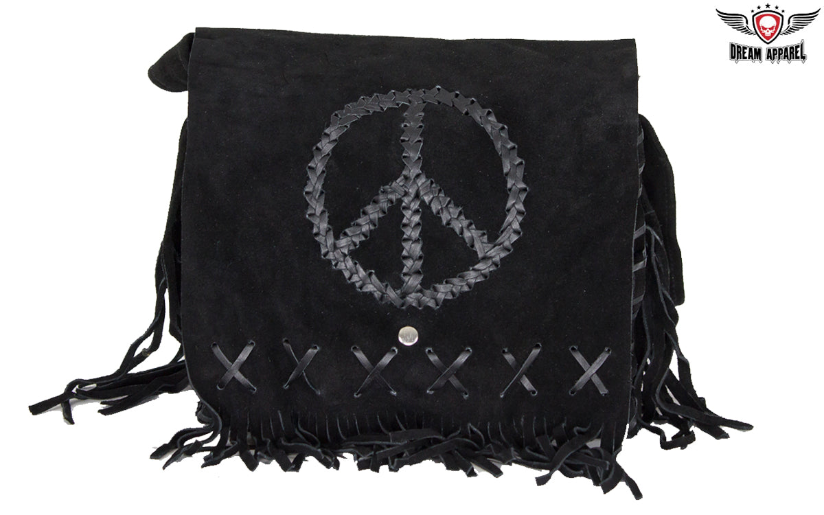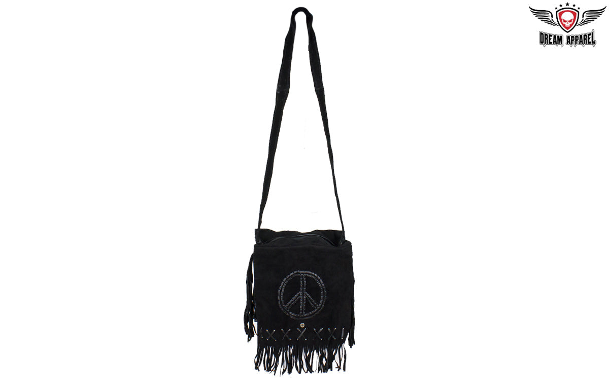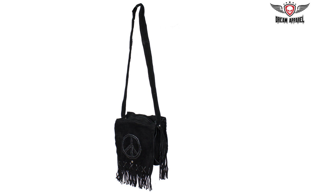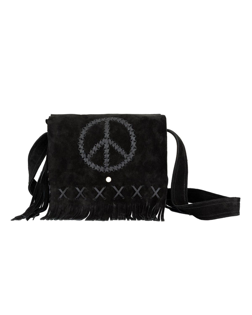 Women's Genuine Black Suede Pocketbook with Peace Sign