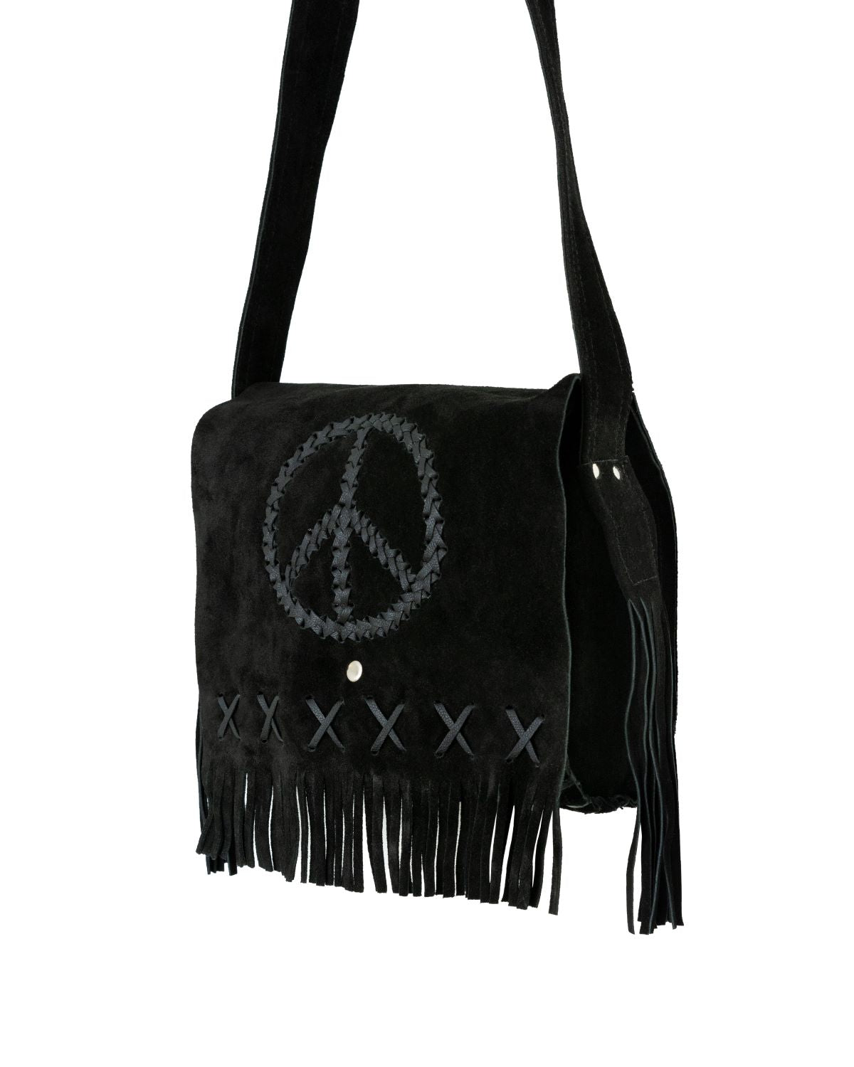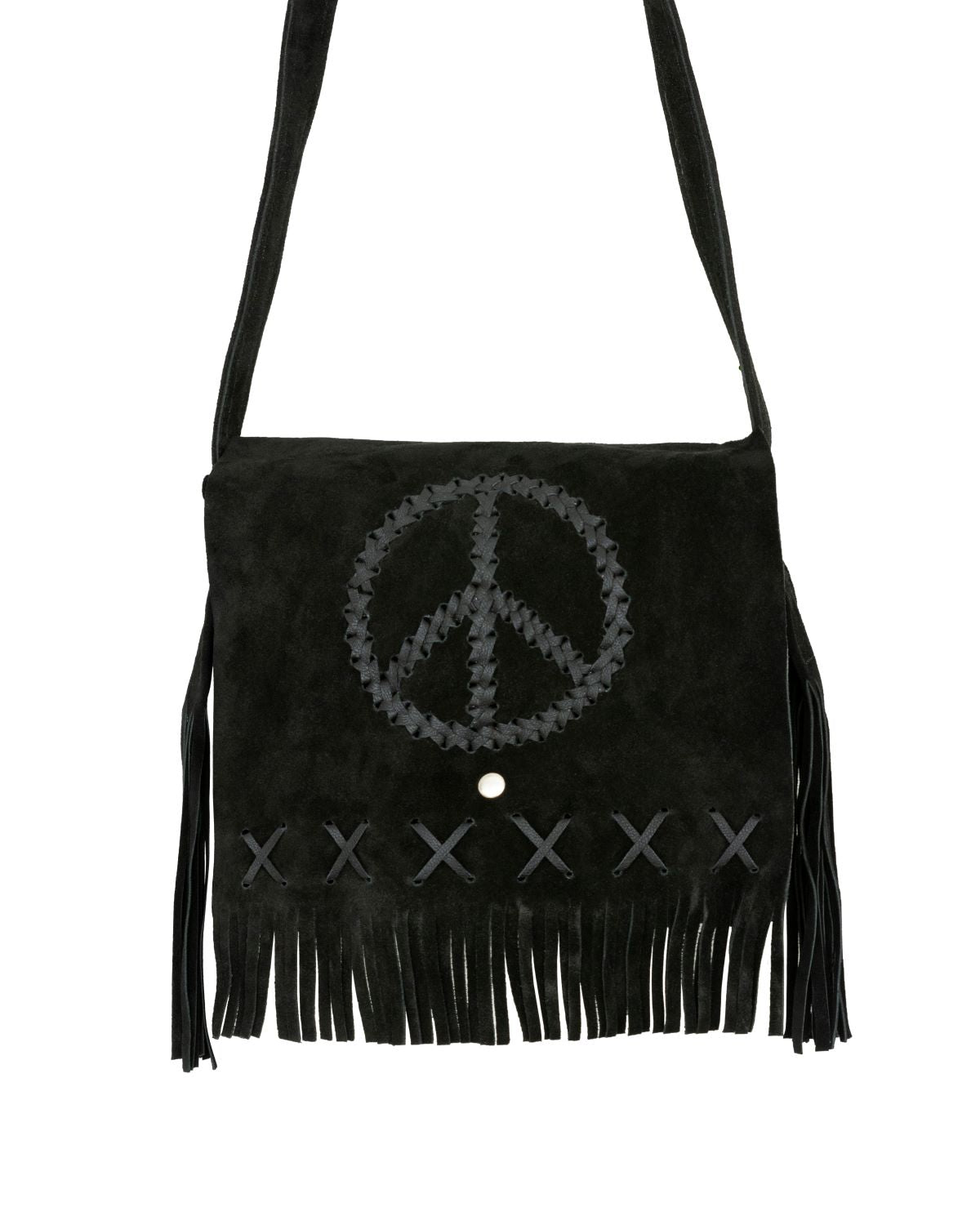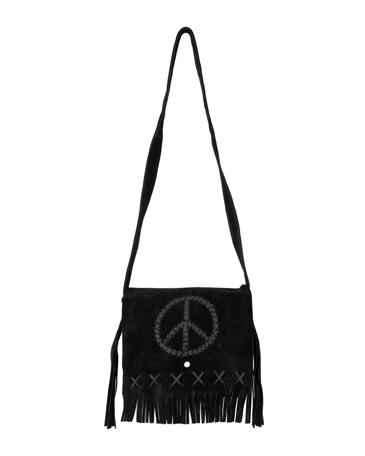 Women's Genuine Black Suede Pocketbook with Peace Sign